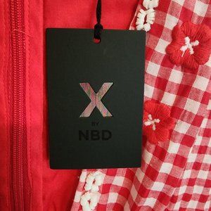 NWT X by NBD Florence Red & White Gingham Beaded Embroidered Mini Dress NWT