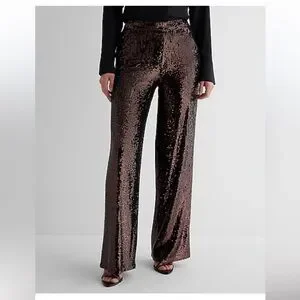 Express High Waisted Sequin Wide Leg Pant bronze women’s NEW 0 short