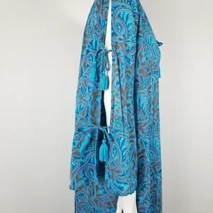 Cleobella Blue Bria Zuri Block Print Kaftan Midi Dress No Belt Size XS *Damaged