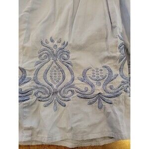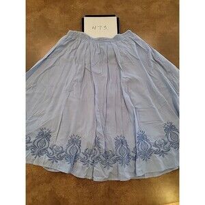 This vintage Orvis skirt is a stunning addition to any wardrobe. The pleated and embroidered floral design adds a touch of elegance, while the elastic waist and A-line style ensure a comfortable and flattering fit. The skirt is made of cotton and is machine washable, making it perfect for travel or casual wear. The blue color and solid pattern make it versatile for any occasion, and the midi length and pull-on closure add practicality to the design. This skirt is a size L and is perfect for women who want to add a touch of sophistication to their wardrobe.