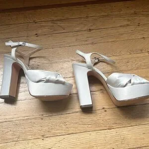 Womens Ivory Satin Stiletto Block-Heel Platform Sandal