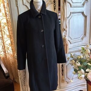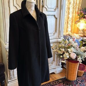 BEAUTIFUL LUXURIOUS COAT. MEDIUM WEIGHT CASHMERE AND WOOL BLEND. VERY SOFT AND WARM, BUT NOT BULKY. BLACK SATIN LINING. VINTAGE SIZE 12. FITS LIKE A CURRENT SIZE 6-8. Runs small like most Vintage Coats. NEWLY LISTED FOR YOUR FALL AND WINTER WARDROBE. Freshly Dry Cleaned and ready to wear. COMPETITIVELY PRICED.