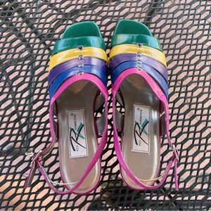 Ros Hommerson | Vintage 80s 90s Narrow Multi-Color Buckle Sandals Metal Details