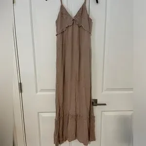 PINKBLUSH Taupe Sleeveless V Neck Maternity Dress