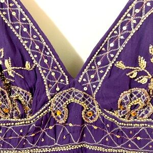 Gorgeous purple ABS cocktail dress with beading. New with tags never worn. Size 12.