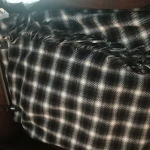 Time and Tru Faux Wrap Flannel Skirt Pull-up Plaid Warm Fringe Office 16-18 XL