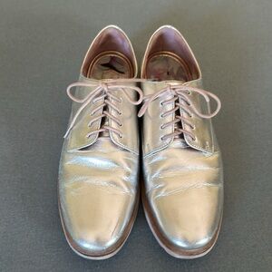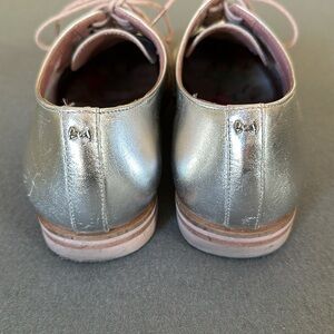 Ted Baker metallic silver lace-up Oxfords in good used condition. 100% Leather. Minor scuffing. So cute! US size 8