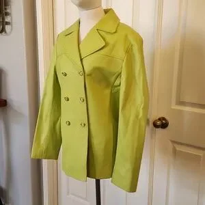 St John 100% Leather Blazer in a beautiful vibrant green.