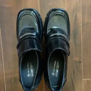Call it Spring High Heel Chunky Vegan Platform Leather Loafers in Black, super cute and comfortable.