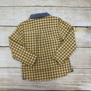 Genuine Kids mustard gingham button down shirt. Features chambray collar and pocket accents. Shirt is size 5t and is in excellent gently used condition. No flaws.