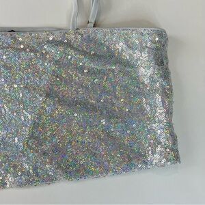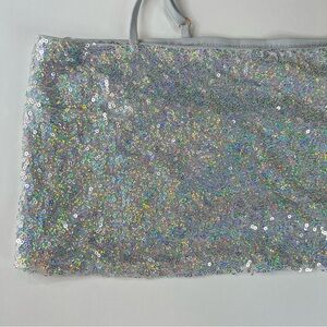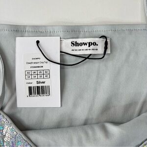 Showpo. Elswyth Sequin Crop Top Iridescent Silver Size 10