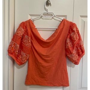 Cropped embroidered puff sleeves.