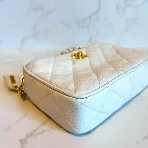 SOLD Small Vintage CHANEL White Caviar Camera Bag