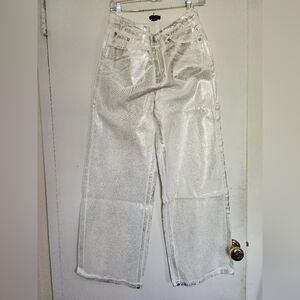 NWT Boohoo Metallic Coated Straight Leg Jeans