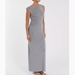 NEW DISSH Poppy Bitter Choc Asym Midi Dress - Silver Gray