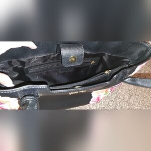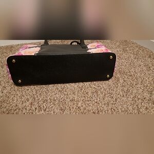 Calvin Klein Saffiano flower printed tote/purse. This bag has a ton of room with three interior parts, the middle section closes with a zip, and the whole bag closes with a magnetic button. In light used like new condition.