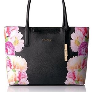 Calvin Klein printed Saffiano flower tote purse, large bag with 3 pockets.