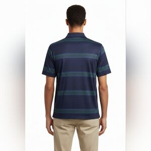 Ben Hogan Men's Blue/Green Striped 3 Button Short Sleeve Polo Shirt