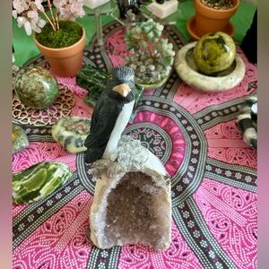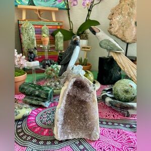 Penguin Gemstone carving form Peru on Brazilian Amethyst base - Handmade and Unique