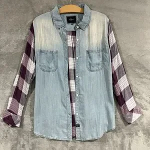 Rails Chambray Plaid Button Down Shirt Long Sleeve Collared Womens Size Medium