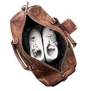 ->GENUINE LEATHER : This Duffle Bag is Made from Genuine Cowhide Leather. The thread used for stitching is strong and also enhances the overall look of the Duffle Bag.