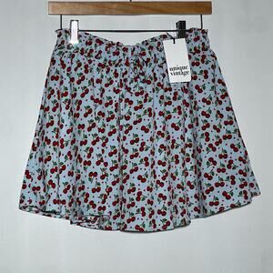 Unique Vintage Cherry Print Dottie Flowy Mini Skirt Blue Red Womens Size Small Y2K