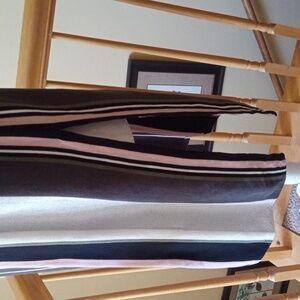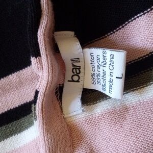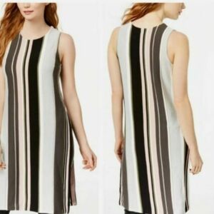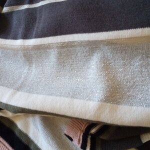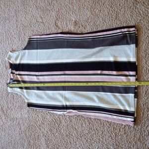 Bar III sleeveless cotton blend with side slits stretchy striped knit blouse tunic top. Metallic weave to one of the stripes. Fun to pair with your favorite leggings and heels!