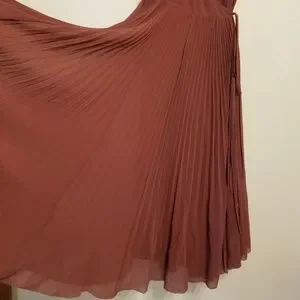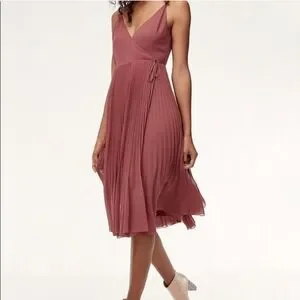 This NWOT Wilfred Beaune wrap dress is a girl's best friend. So flattering and easy care with permanent sunburst pleats.