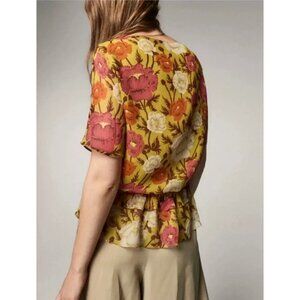 NWT Massimo Dutti mulberry silk chartreuse floral ruffle blouse
