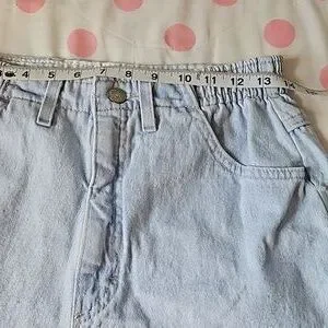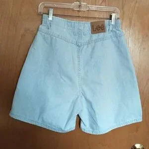 These are vintage, NWOT light wash Lee jean shorts size 10. High rise, front pockets. These have a little elastic on the sides for a little ease. Very nice. Classic pair of jean shorts!