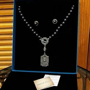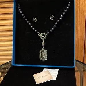 Heidi Daus Navy Pearl Locket Necklace & Earrings Set - NWT 💙✨
