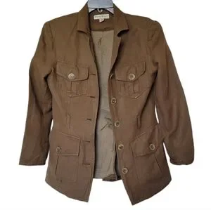 I am not a perfect fit for this size 4 but modeled it anyway to show how cute it is on! wish it fit me but it's snug on my arms and the sleeves are too short. I'm about 5'7" and typically wear a medium 6/8 in jackets. This will fit a size XS -S. check measurements carefully and feel free to ask questions!