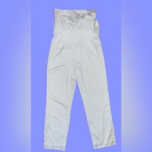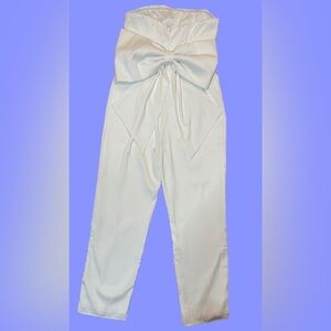 🆕#9 NWOT LULUS Beloved Bliss Ivory Strapless Slim jumpsuit, back Removable Bow.