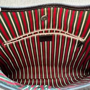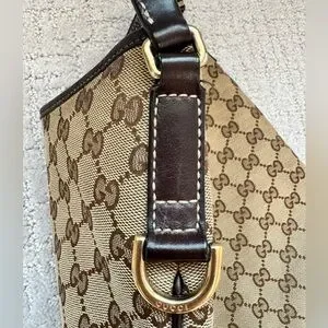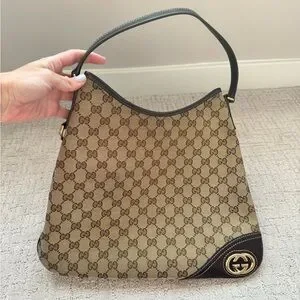 Vintage Gucci Medium Canvas Hobo Bag. 100% authentic, see pictures for serial number. Purchased from Nemian Marcus in 2007. Gently used - minimal light staining on inside lining of bag, mild light stain on canvas, mild wear to corner leather, and some very mild tearing on inside lining of bag that is not visible unless lining of bag is turned inside out.