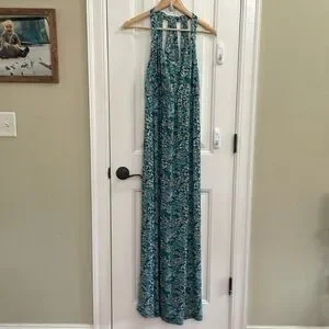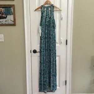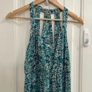 Beautiful floral green maxi dress with cute back detailing. So soft and comfortable!! Soft and stretchy material. New with tags! Approx Ptp 17 and will stretch to 19!inches easily. Length 57 inches, could be hemmed easily if needed. Size Small