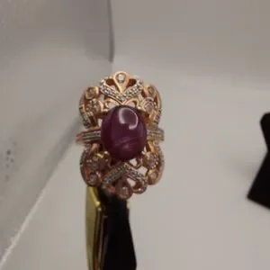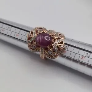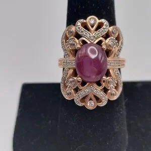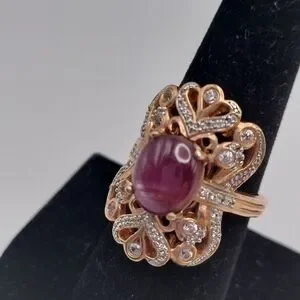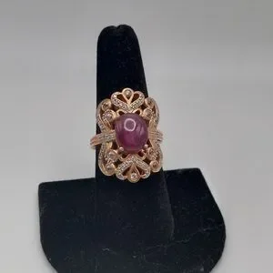 Stunning Statement Ring in Rose GOS Purple Cabachon & Cz sz 8. A Lovely Addition to Your Jewelry Collection!