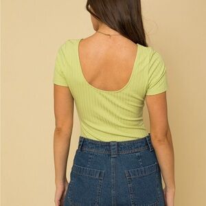 Short sleeve bodysuit finished with a square neckline.
