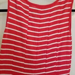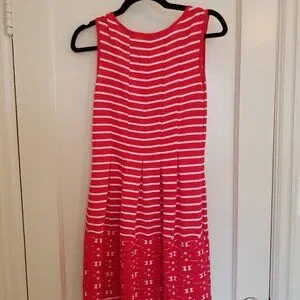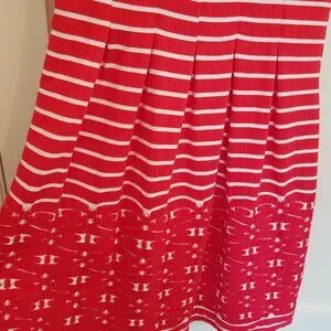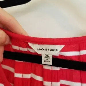 This Max Studio XS knee-length dress is so cute, with slimming pleats and well-crafted vertical stitching. It's light-weight but durable, and also machine washable! Fabric content and care instructions are pictured. Love the stretchy, breathable fabric and the pattern on the skirt! 16" pit-to-pit.