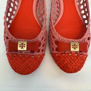 Tory Burch Pink and Orange Leather Woven Carlyle Ballerina Flats Size 8.5