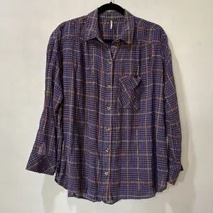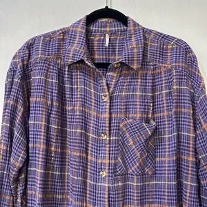 FREE PEOPLE WOMEN BLOUSE LONG SLEEVE PURPLE OVERSIZED SZ SMALL