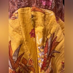 Spell’s Siren Song dress in marigold. Size small. Last photo shows a panel of the same Spell fabric, purchased directly from Spell that was professionally sewn at the YKK zipper to accommodate a larger bust size. Worn a couple of times, and is in excellent condition.