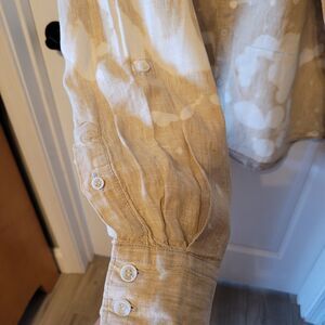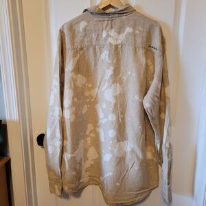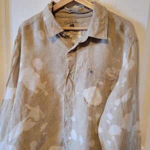 Quiksilver Shirt Mens XXL Tan Linen Tie Dye Bleached Y2K Long Sleeve Beach