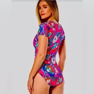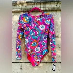 Show your extravagant Radiant Pink Sea Garden print this summer in this flattering long-sleeve fitted silhouette swimsuit - ideal for any activity, in or out of the water.