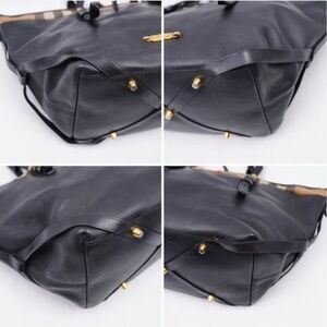 This Burberry Black Soft Leather and House Check Canvas Medium Salisbury Tote Bag is perfect everyday bag. It features comfortable adjustable handles with buckle detailing, top zip closure, protective feet in gold-tone hardware, and a gold-tone logo plaque on its front. Its interior is lined with canvas and houses two patch pockets and a zipped one.