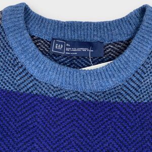$59 Gap Sweater Mens Extra Large Lambs Wool Blue Striped Blend Herringbone