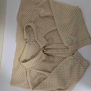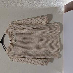 Womens Hinh Collection blouse cream with black dots. does not have a size tag. PTP 20 and Length 24.