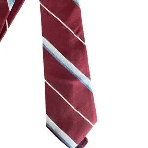 This exquisite vintage men's tie exudes timeless elegance. Crafted in the USA from luxurious silk imported from Italy, its rich burgundy hue is accented with sophisticated stripes. An ideal accessory for the discerning gentleman, it promises to elevate any formal or business ensemble.
