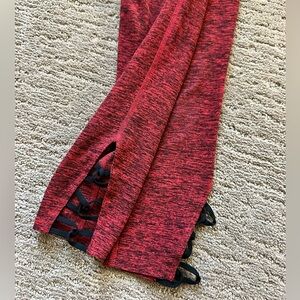 Excellent condition Beyond Yoga Spacedye Interlooped high waisted capri leggings in XS. Color is black/chili red. Inseam is about 20.5” (they’re 7/8 length on me and I’m 5’3”).