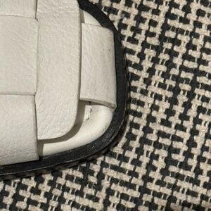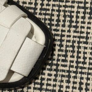 Sam Edelman’s Dina fisherman slide. White pebbles leather. Pretty worn, nicks on the sole edge as photos
