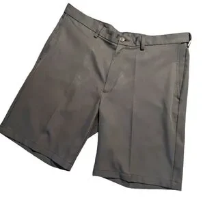 Haggar COOL 18 PRO FLAT FRONT Gray Comfort Waist Golf Sports 9" Shorts Size 38